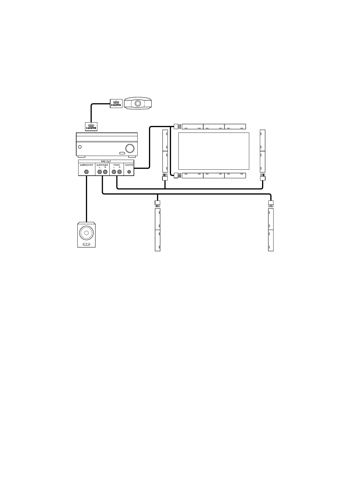 Raccordez les enceintes à un récepteur AV doté de bornes de sortie de préamplification (PRE OUT)