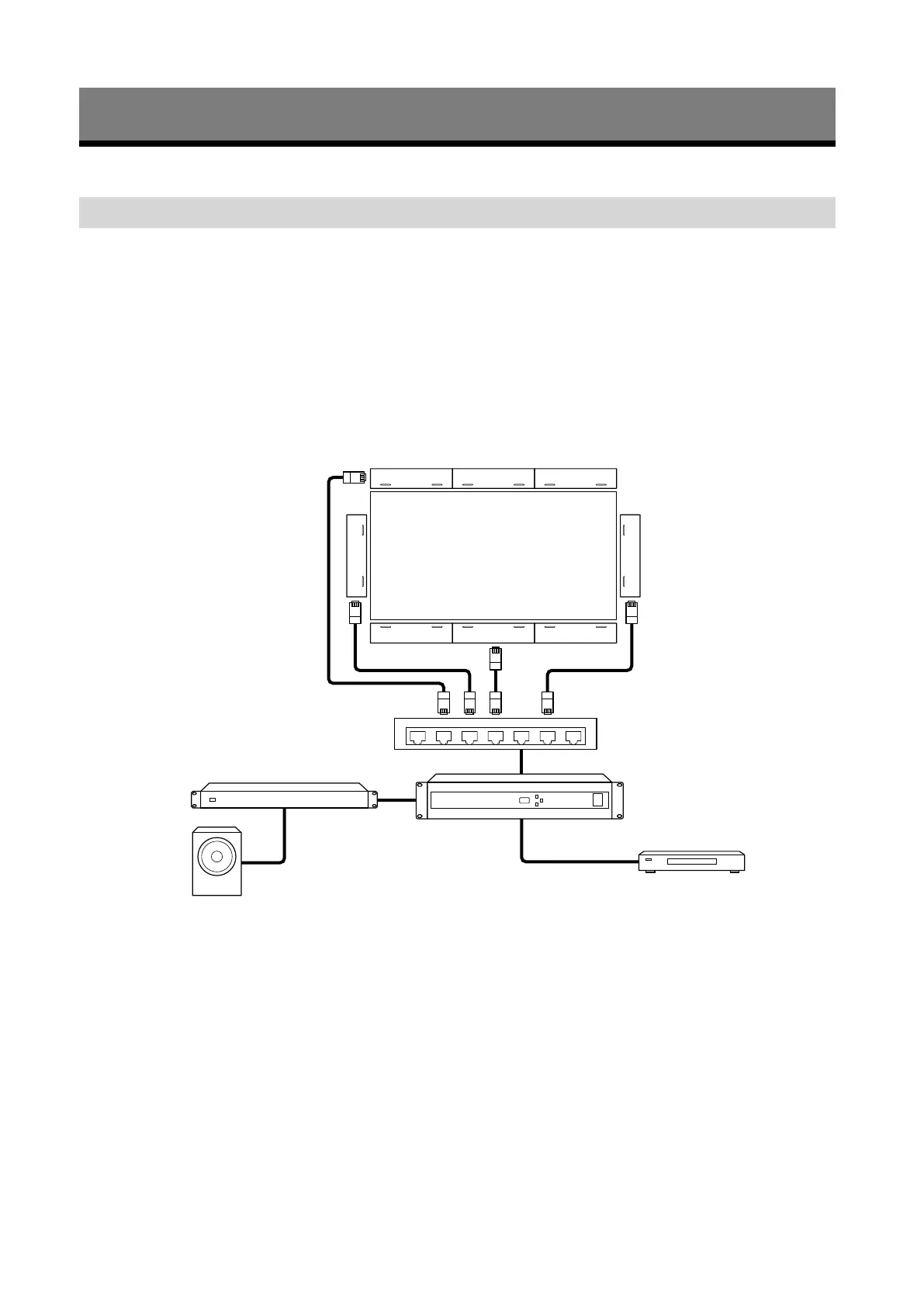 下記は、大きな施設で大画面ディスプレイの上下/左右にスピーカーを配置して使用するときの接続例です。