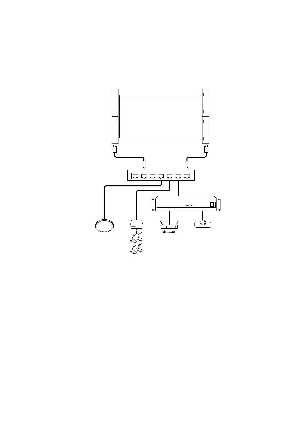 下記は、大きな会議室または教室で使用するときの接続例です。