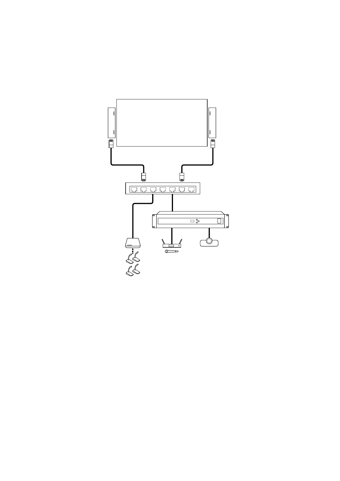 下記は、中規模な会議室で手軽に設定して使用するときの接続例です。