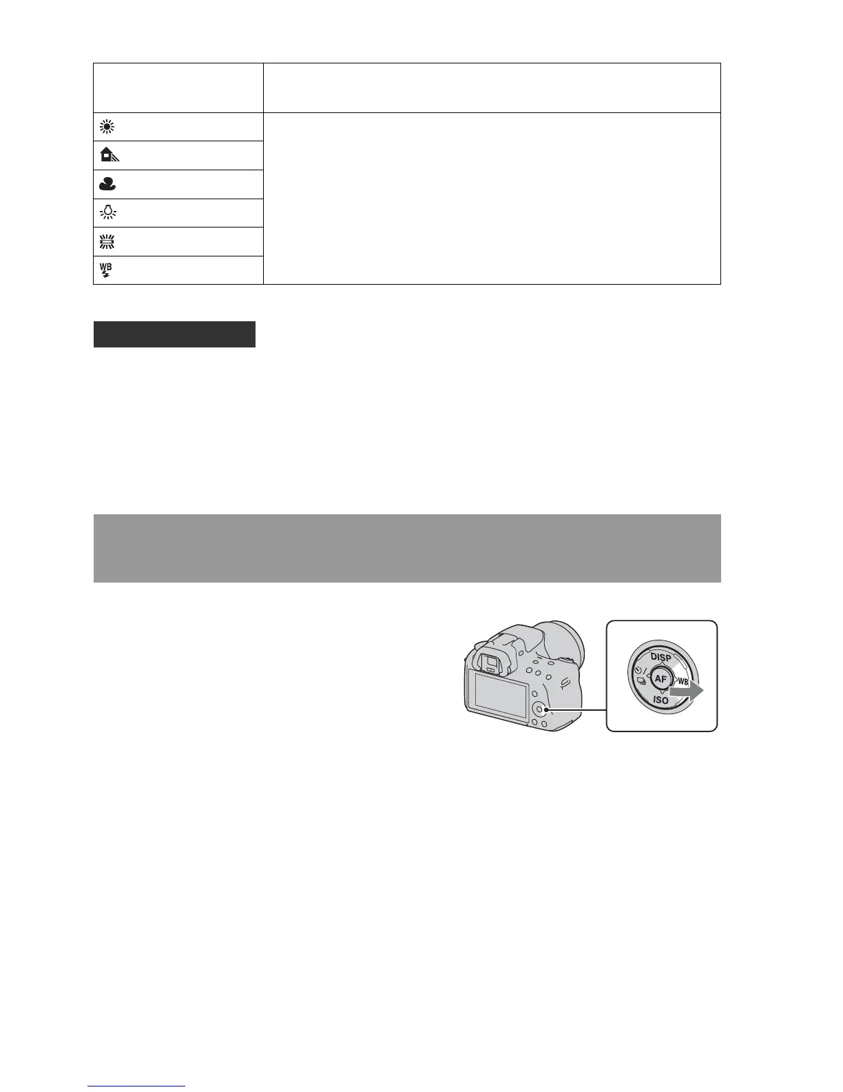 AWB (Auto WB) The camera automatically detects a light source and adjusts