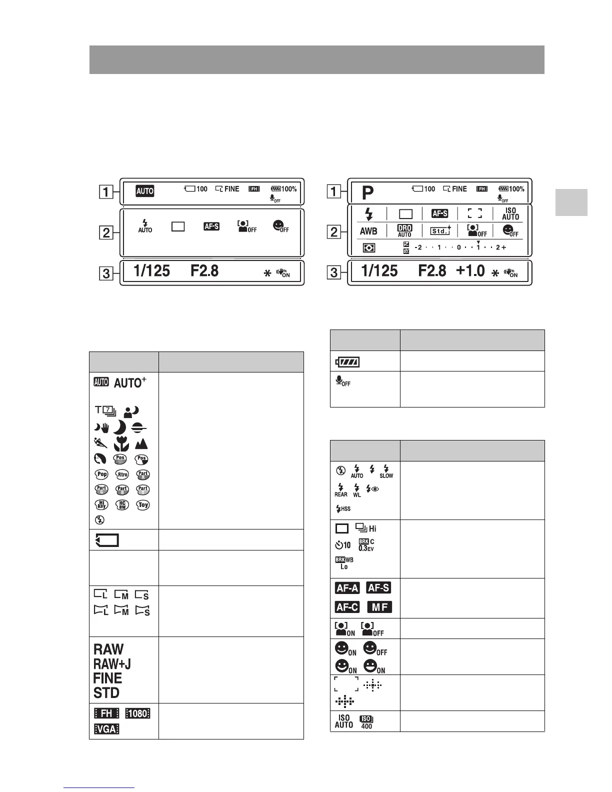 Recording information display (For viewfinder)