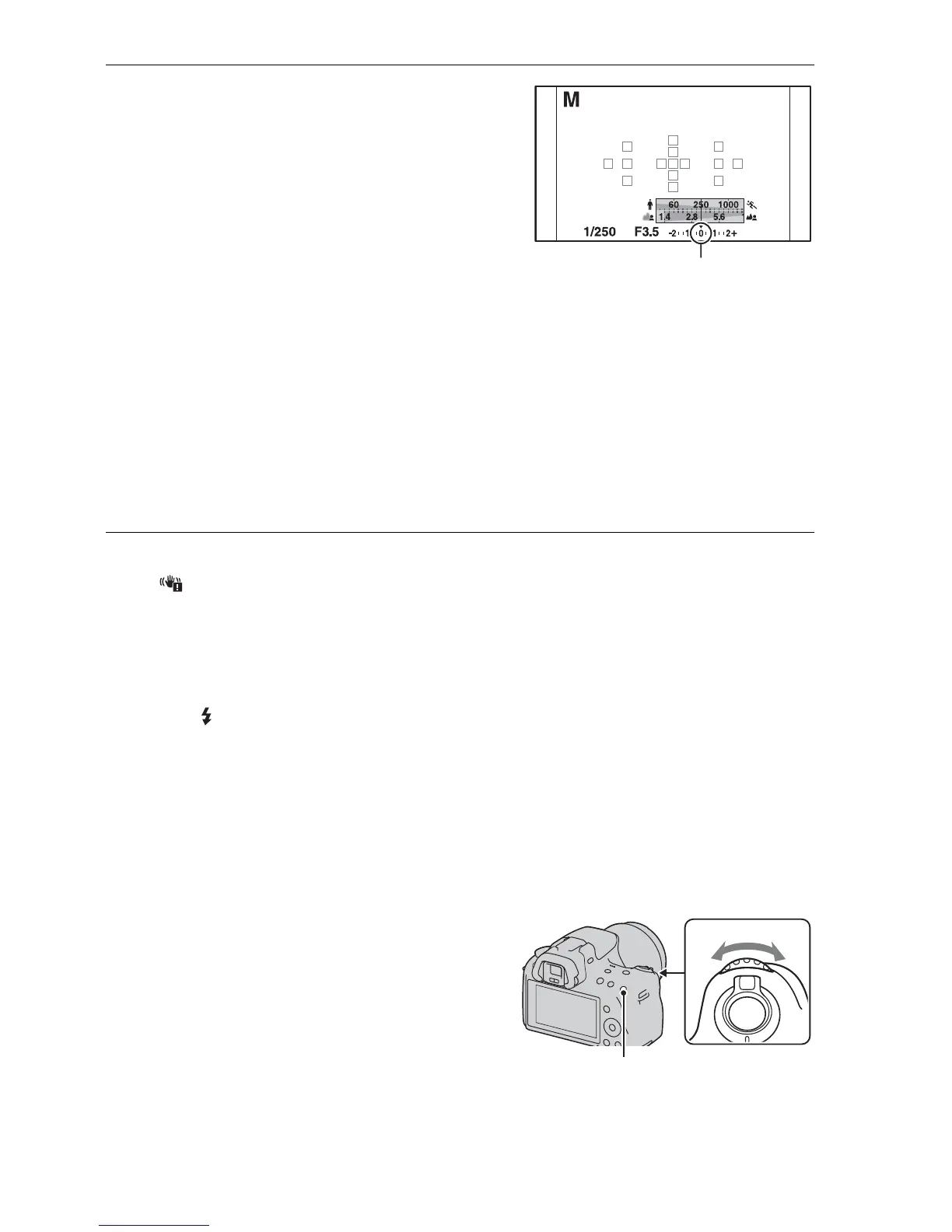 • The (Camera shake warning) indicator is not indicated in manual exposure