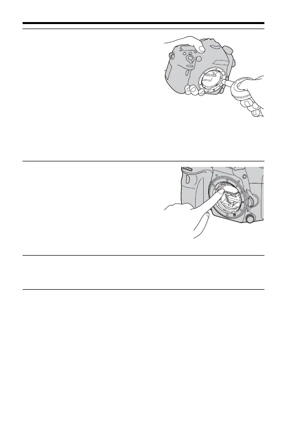• Confirm that the mirror is locked down firmly when you attach the lens.