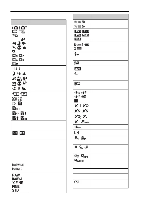 Sony SLT-A99V - Interpreting Screen Display Icons; Display Indications (Part 1); Display Indications (Part 2)