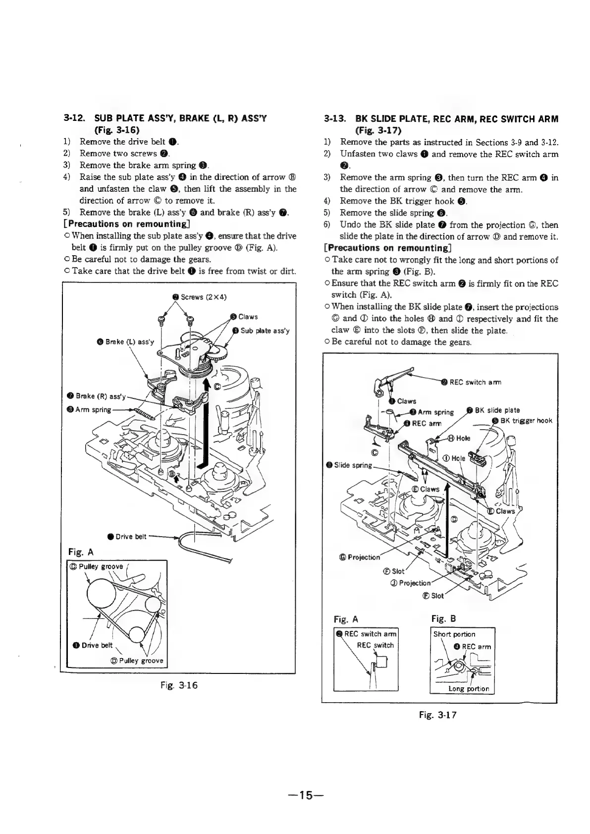 Sony SLV-286EE - Sub Plate Assy, Brake (L, R) Assy; BK Slide Plate, Rec Arm, Rec Switch Arm
