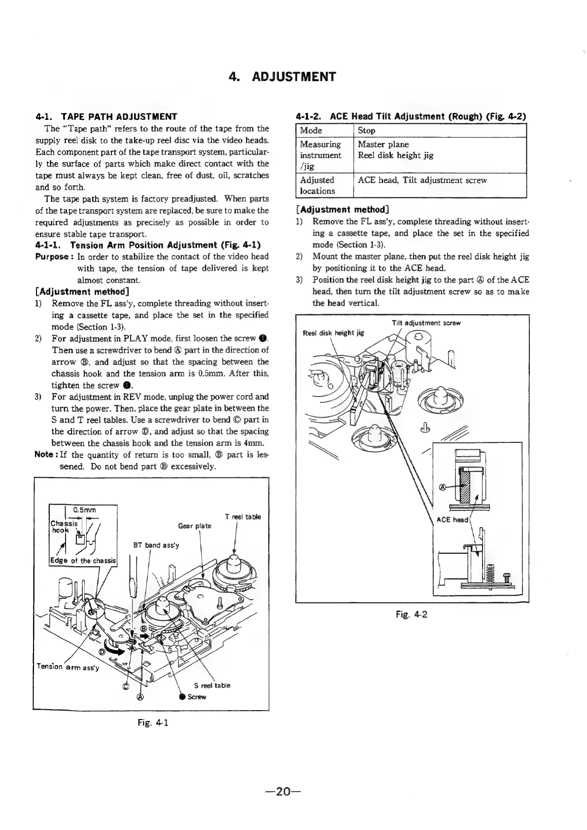 Sony SLV-286EE - Adjustment; Tape Path Adjustment; Tension Arm Position Adjustment; ACE Head Tilt Adjustment