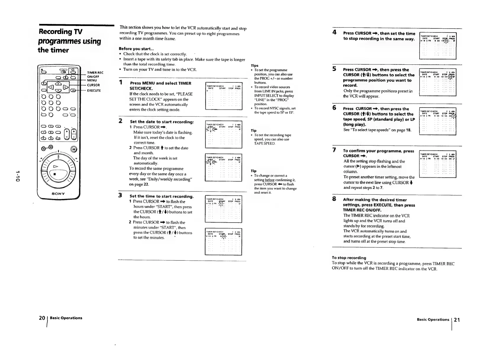 Sony SLV-286EE - Recording TV Programmes Using the Timer