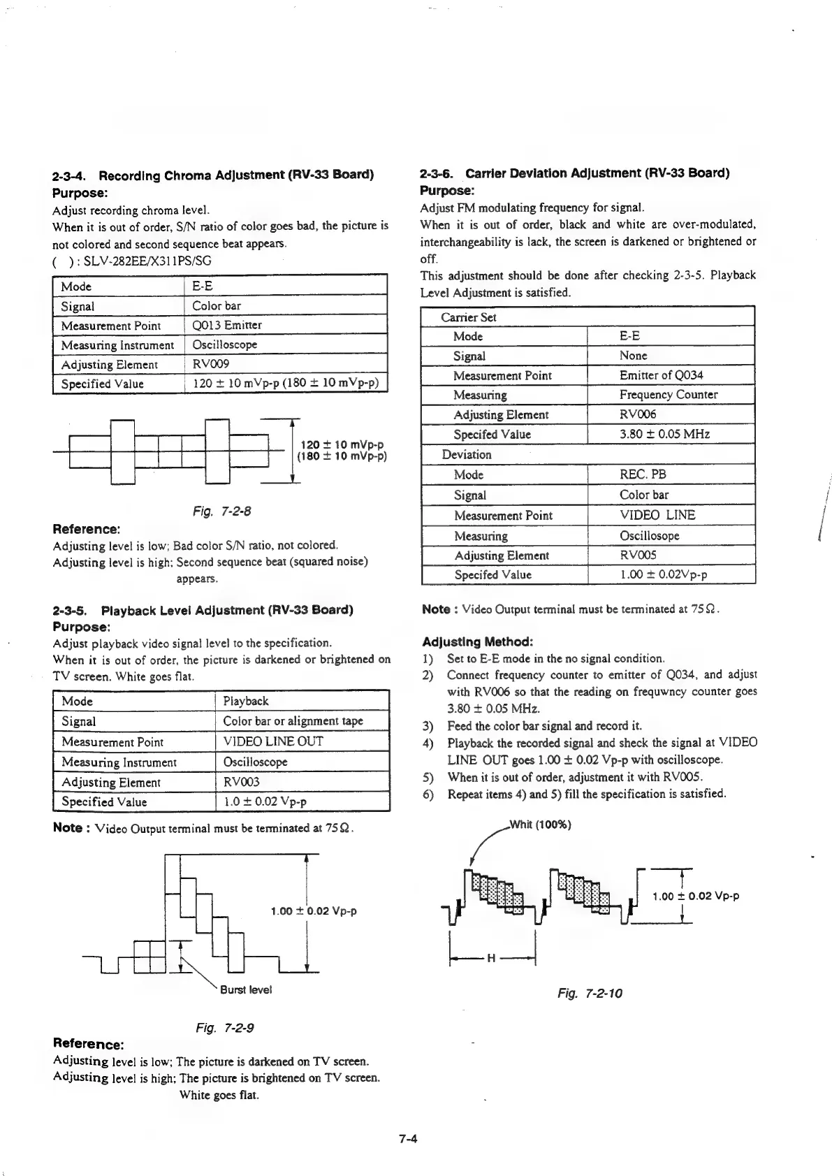 Sony SLV-286EE - Recording Chroma Adjustment +-+ *+-+0; Playback Level Adjustment; Carrier Deviation Adjustment