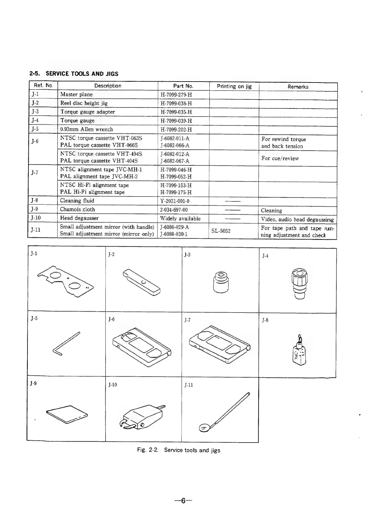 Sony SLV-286EE - Service Tools and Jigs
