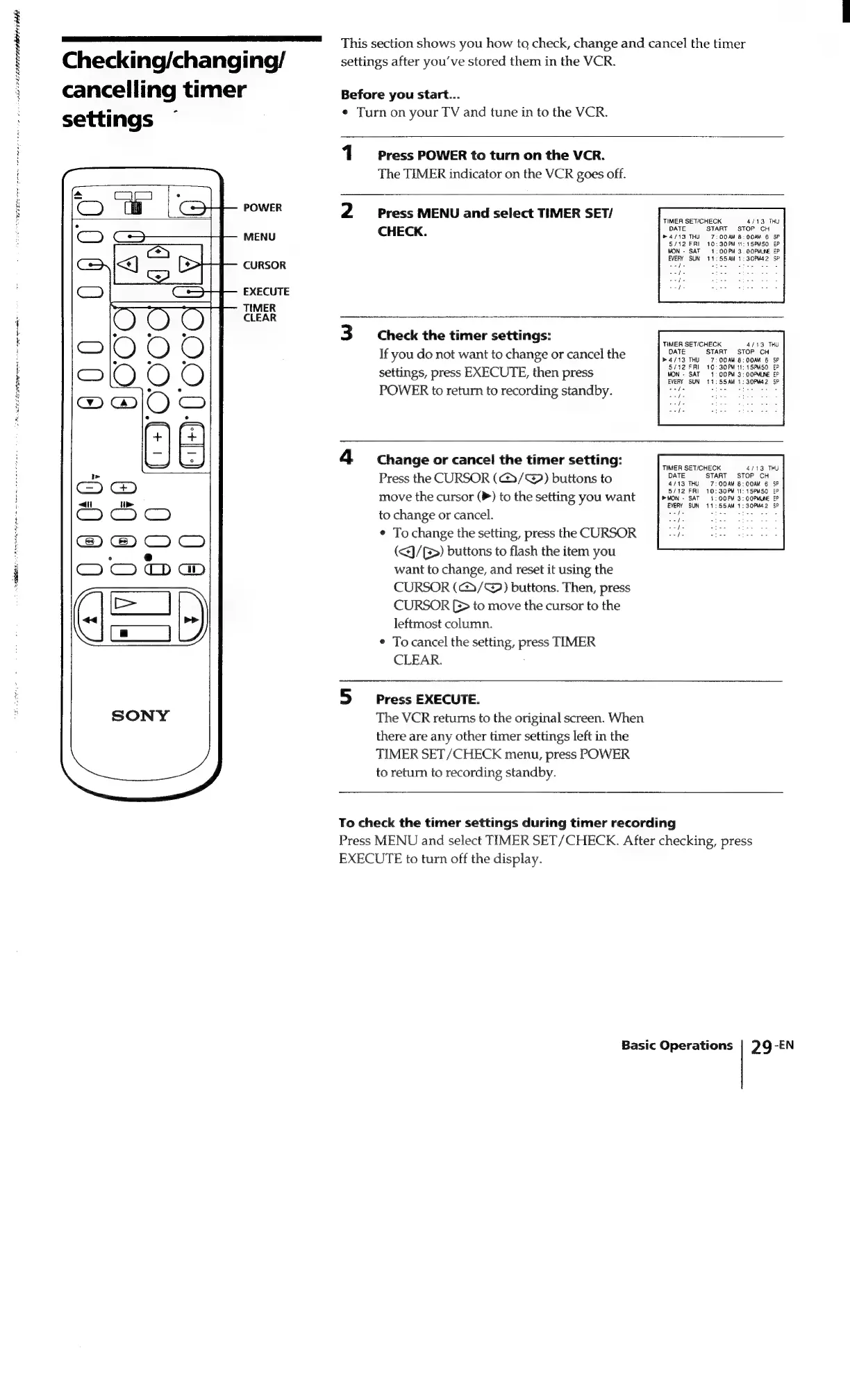 Sony SLV-340 - Checking;Changing; Cancelling Timer Settings