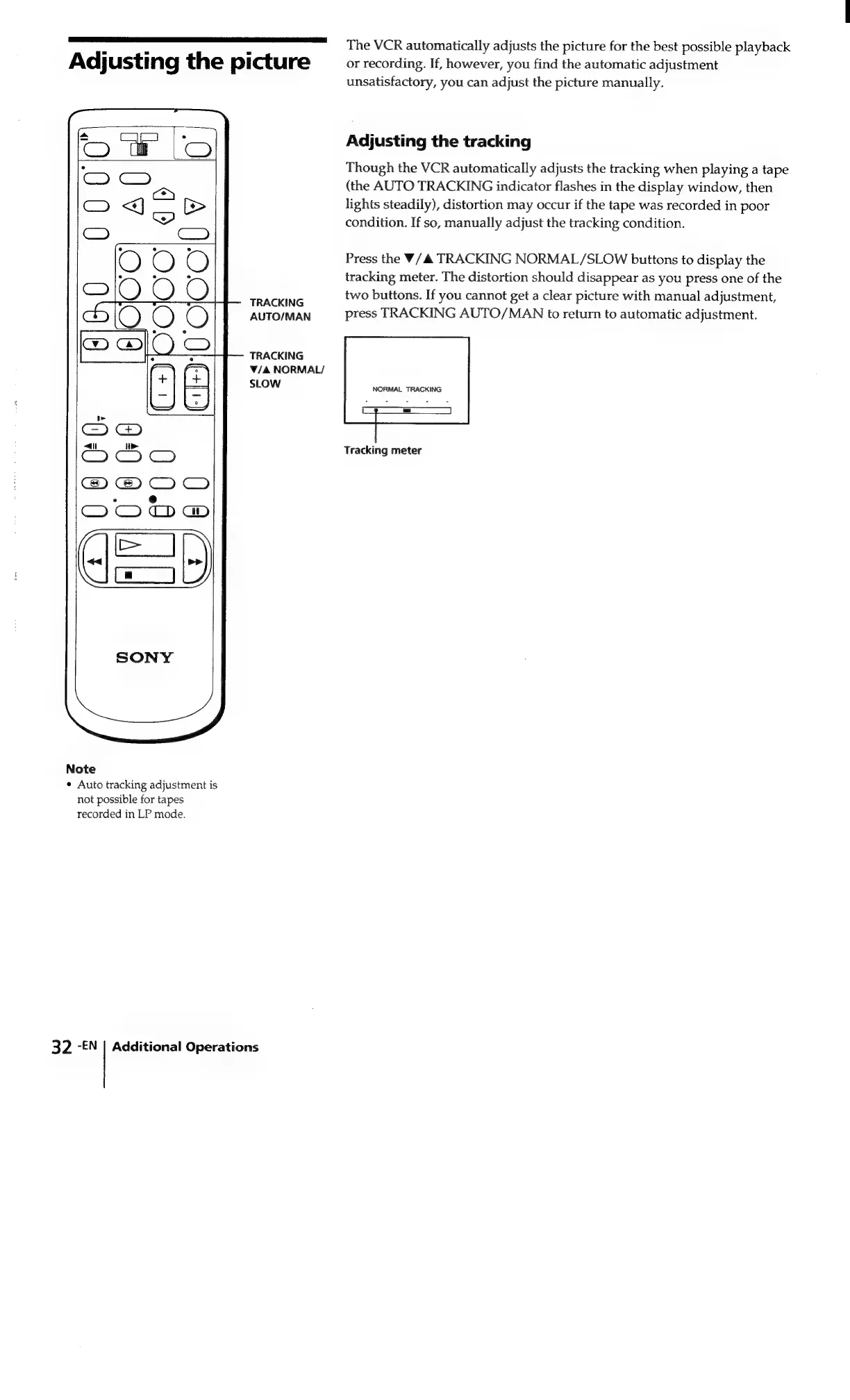 Sony SLV-340 - Adjusting the Picture; Adjusting the Tracking