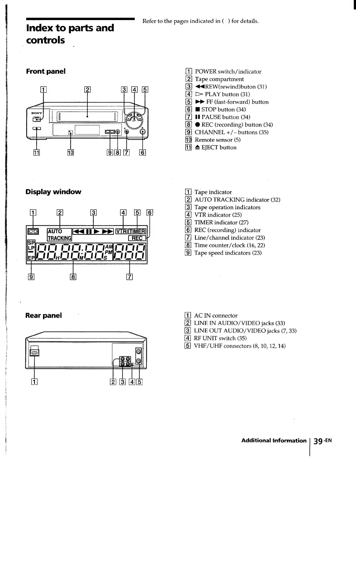 Sony SLV-340 - Index to Parts and Controls; Front Panel