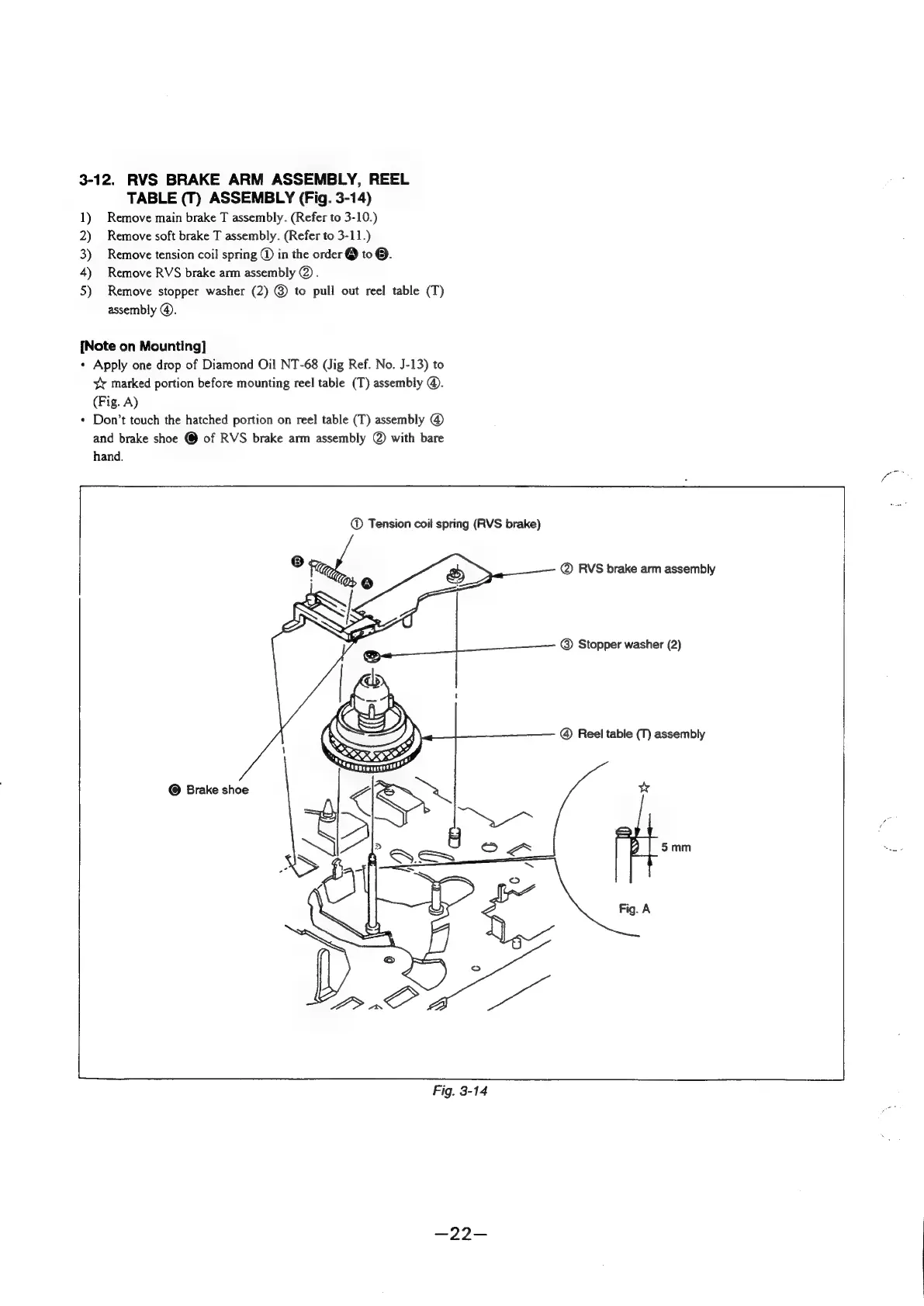 Sony SLV-360 - Reel Table (T) Assembly (Fig. 3-14); RVS Brake Arm Assembly