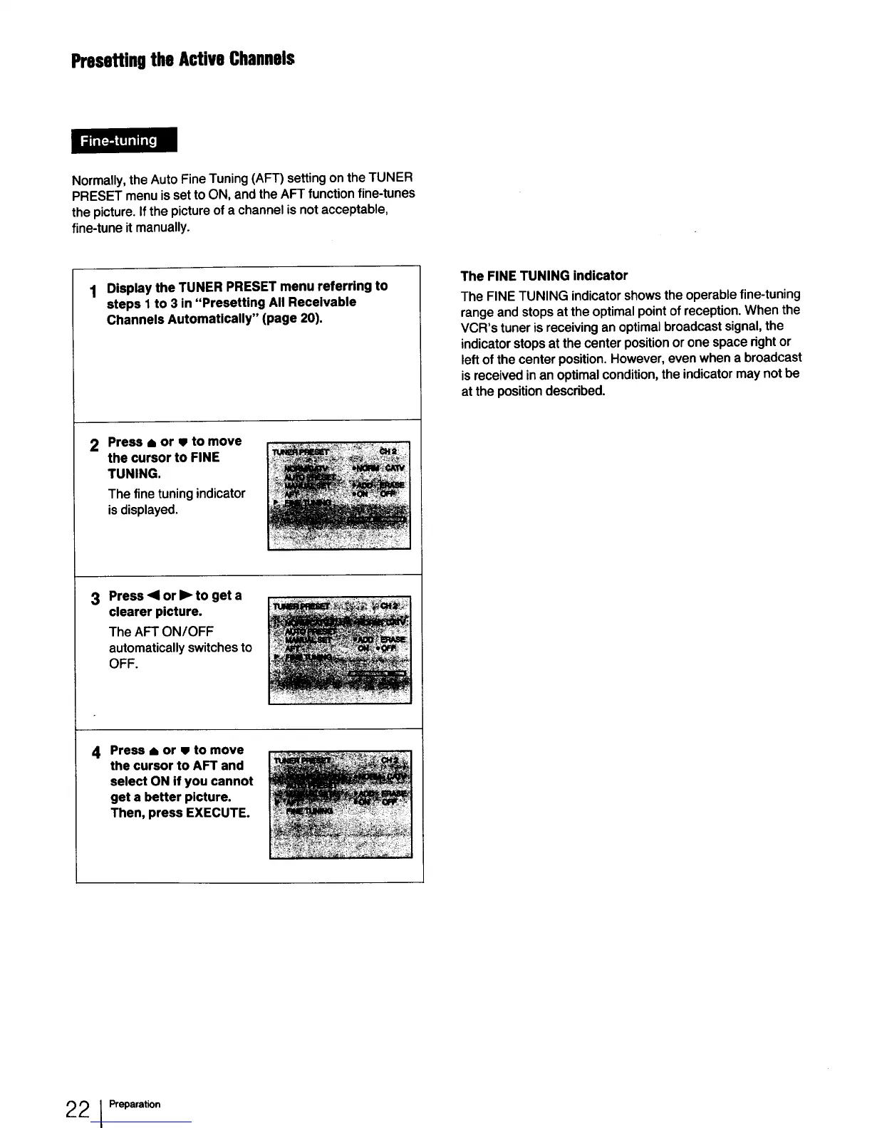 PRESET menu is set to ON, and the AFT function fine-tunes
