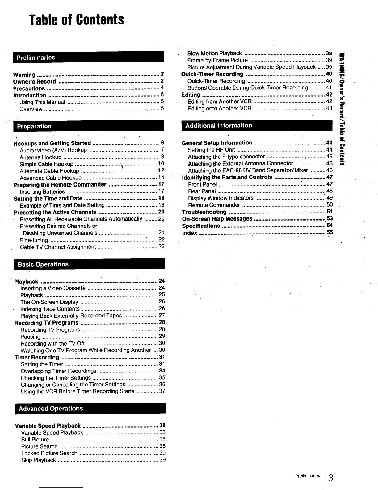 Using the VCR Before Timer Recording Starts ............... 37