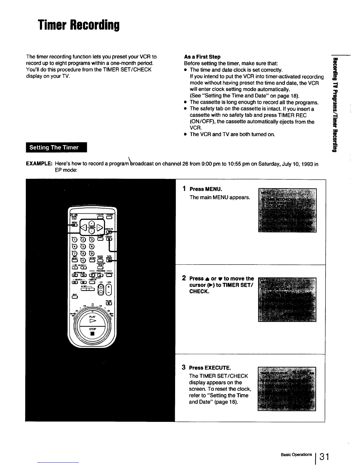 EXAMPLE: Here'showto recorda programbroadcastonchannel26 from 9:00 pm to 10:55pmonSaturday,July10, 1993 in