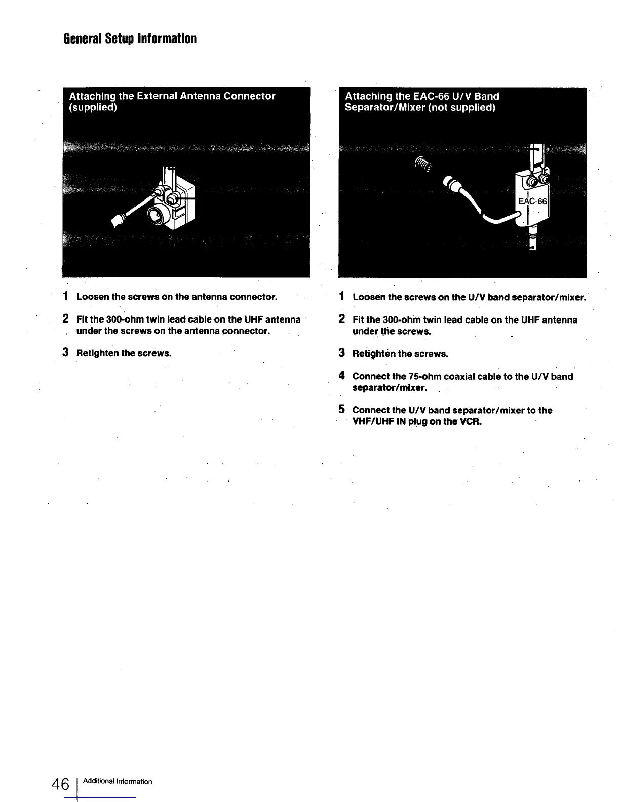 Connect the 75-ohm coaxial cable to the U/V band