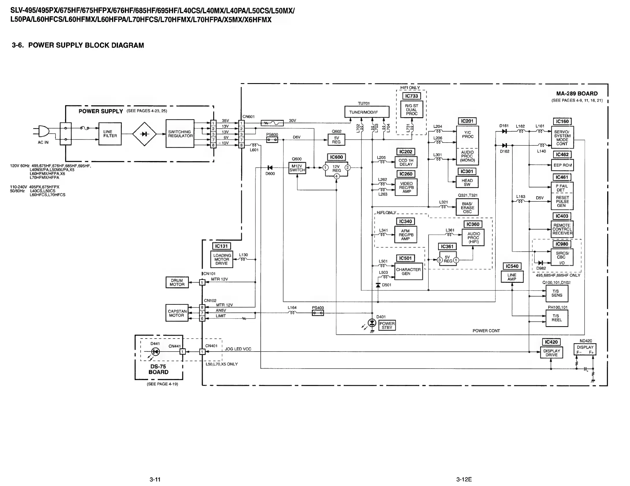 Sony SLV-495 - Power Supply Block Diagram