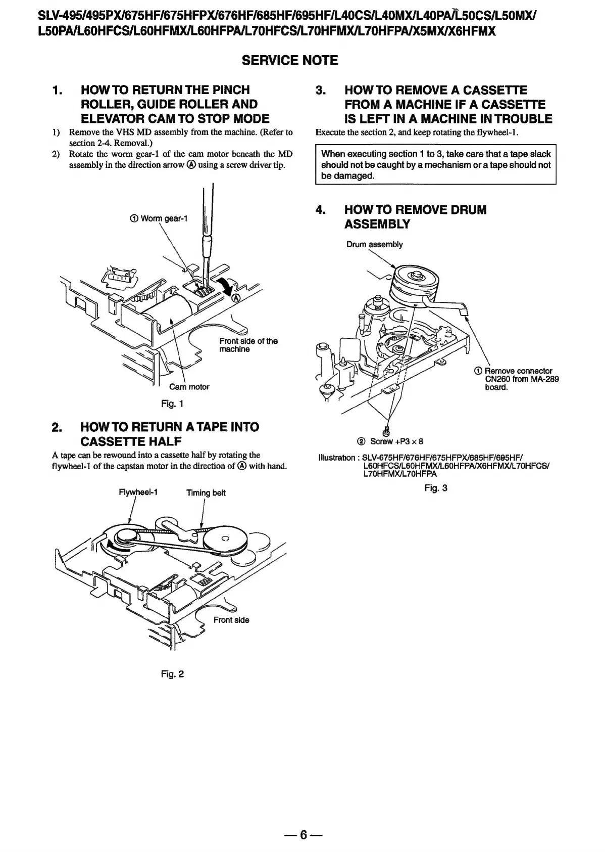 Sony SLV-495 - Service Note; Howto Return the Pinch; ROLLER, GUIDE ROLLER and ELEVATOR CAM to STOP MODE. Ovvss:-S+S+Seseseteeseeeeeeees; Howto Return Atape into