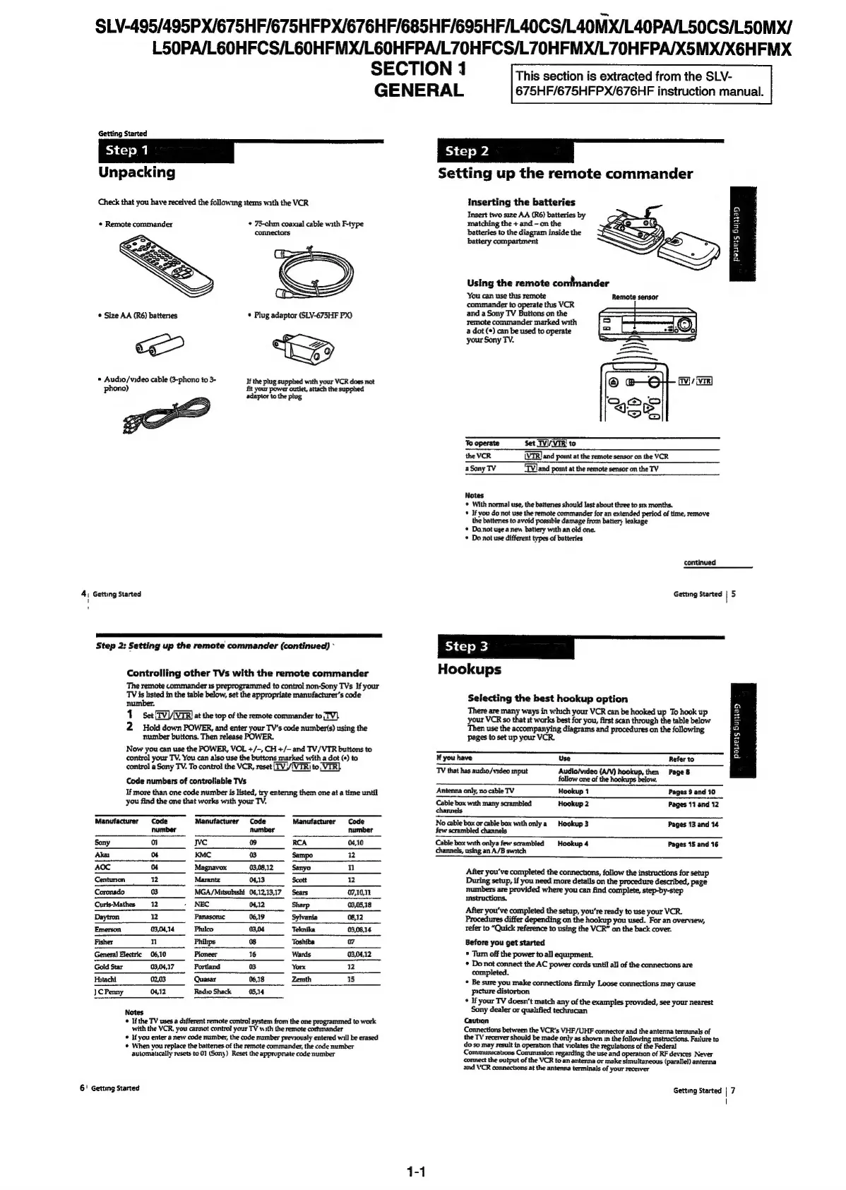 Sony SLV-495 - General; Getting Started; Setting up the Remote Commander; Hookups