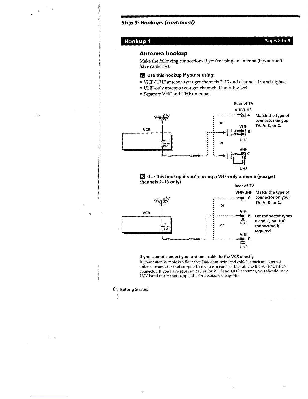 Sony SLV-660HF - Hookup 1: Antenna hookup