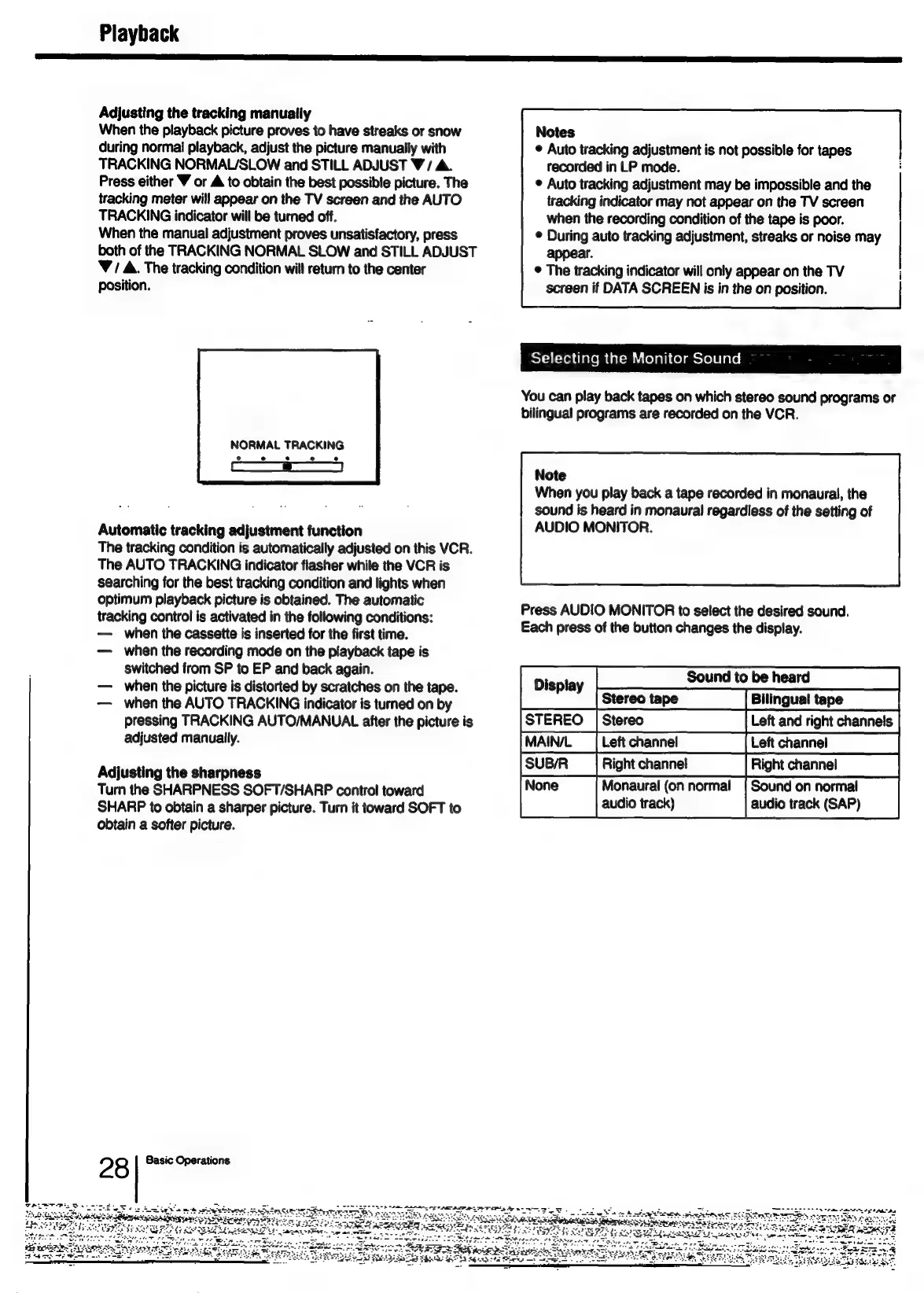 Sony SLV-686HF - Playback Quality Adjustments; Manual Tracking Adjustment; Monitor Sound Selection