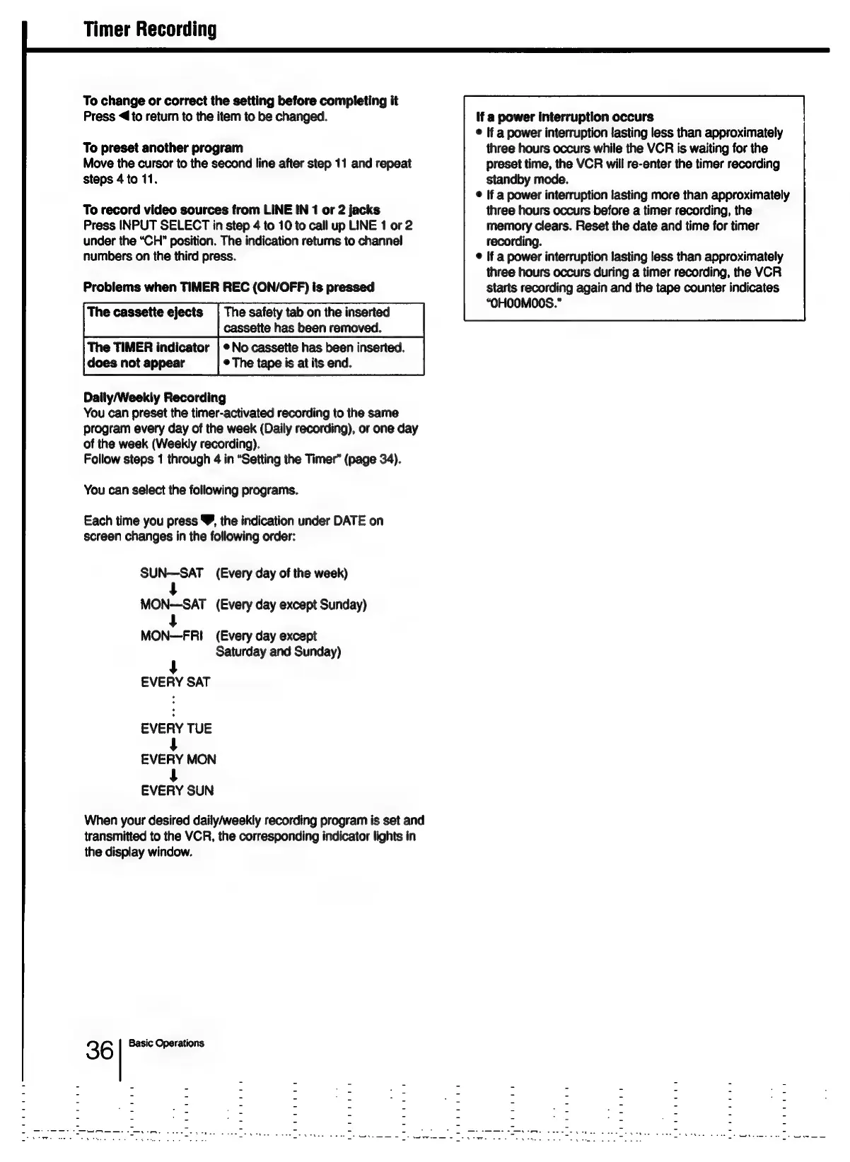 Sony SLV-686HF - Timer Recording Management; Changing or Correcting Timer Settings; Daily;Weekly Recording