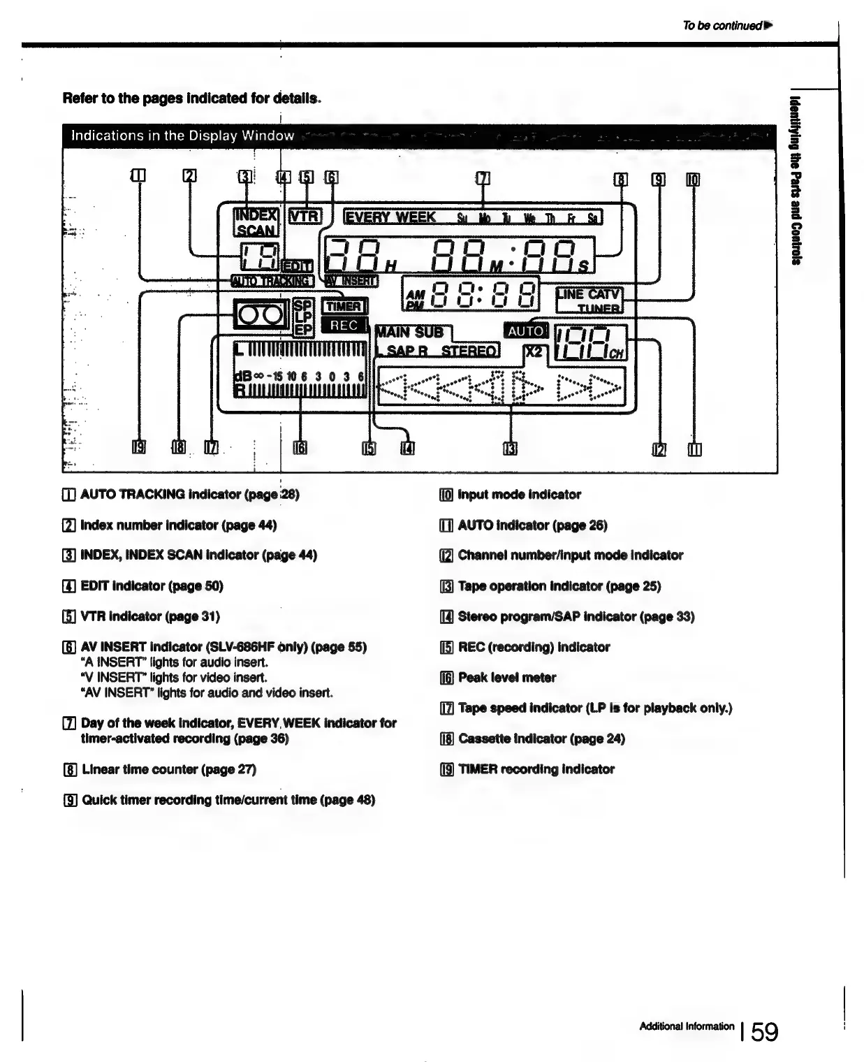 Sony SLV-686HF - Display Window Indications