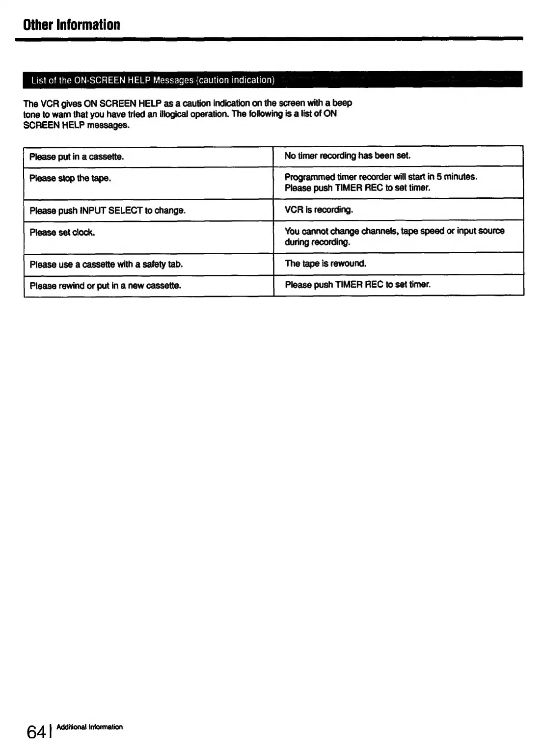 Sony SLV-686HF - ON-SCREEN HELP Messages