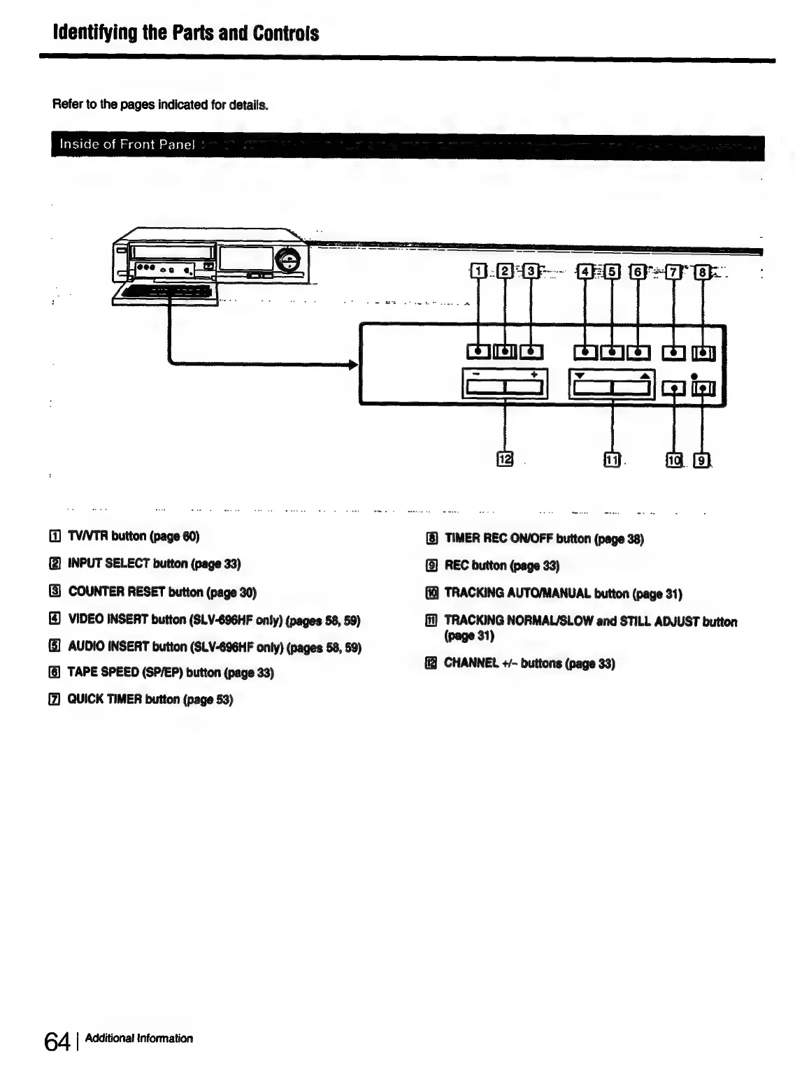 Sony SLV-696HF - VCR Internal Front Panel Controls