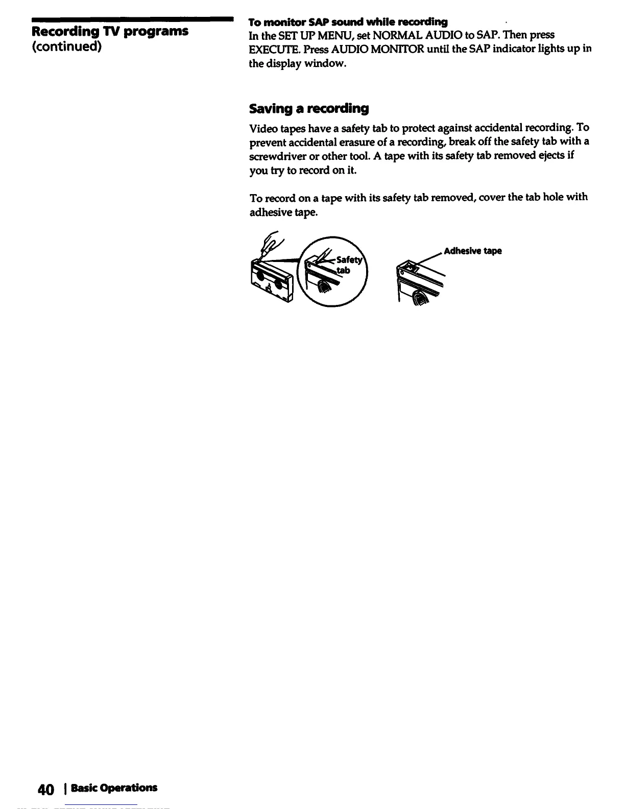 Sony SLV-770HF - Saving a Recording; To Monitor SAP Sound While Recording