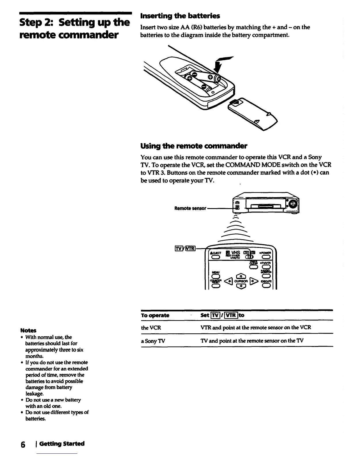 Sony SLV-770HF - Using the Remote Commander; Inserting the Batteries