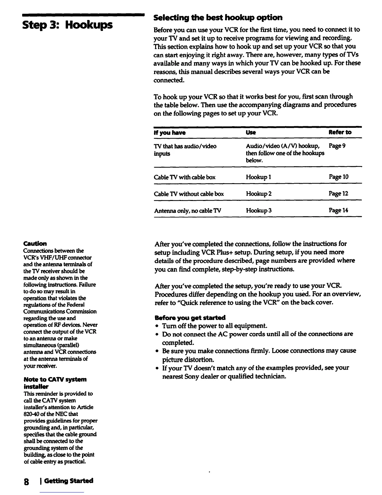 Sony SLV-770HF - Hookups; Selecting the Best Hookup Option; Before You Get Started