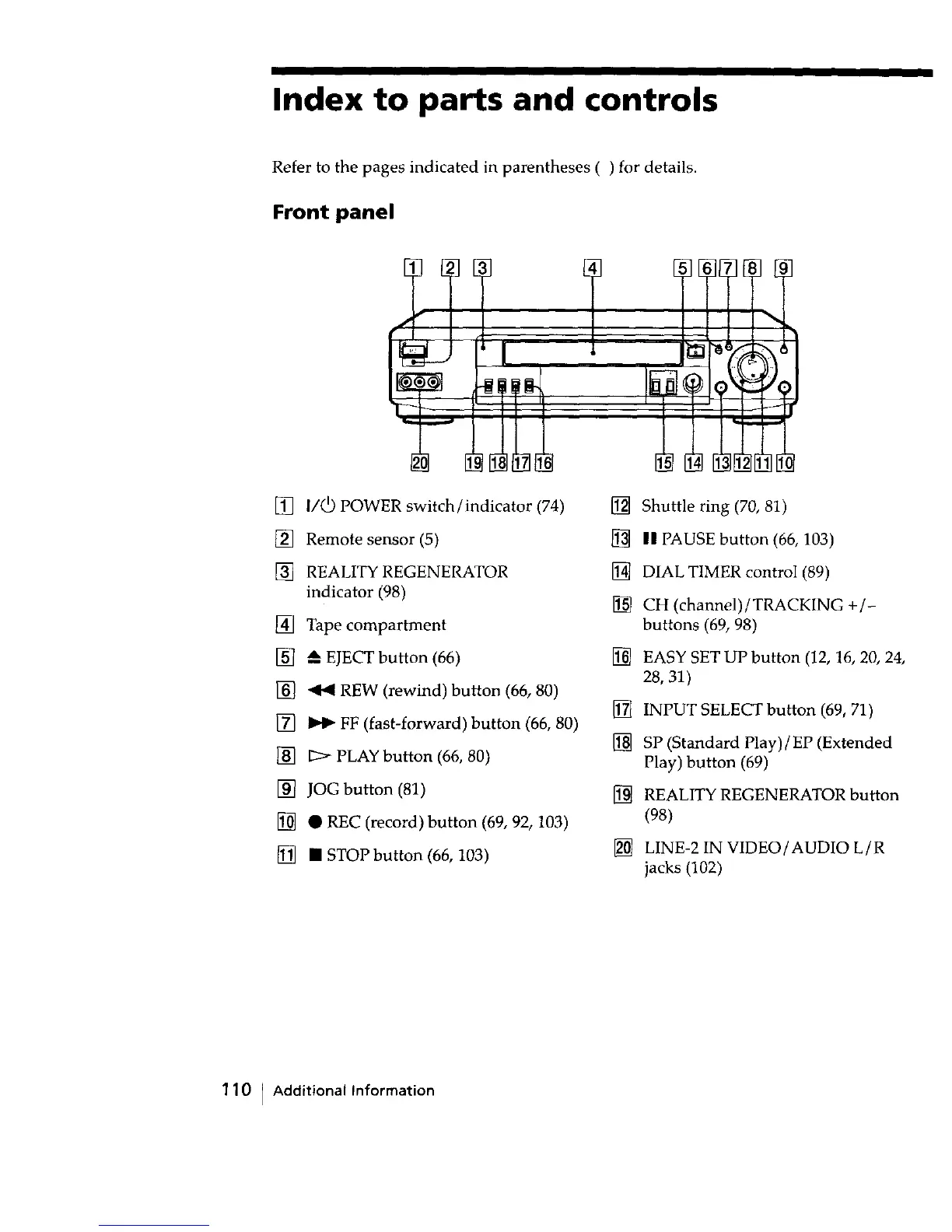 [] • REC (record) button (69, 92, 103)