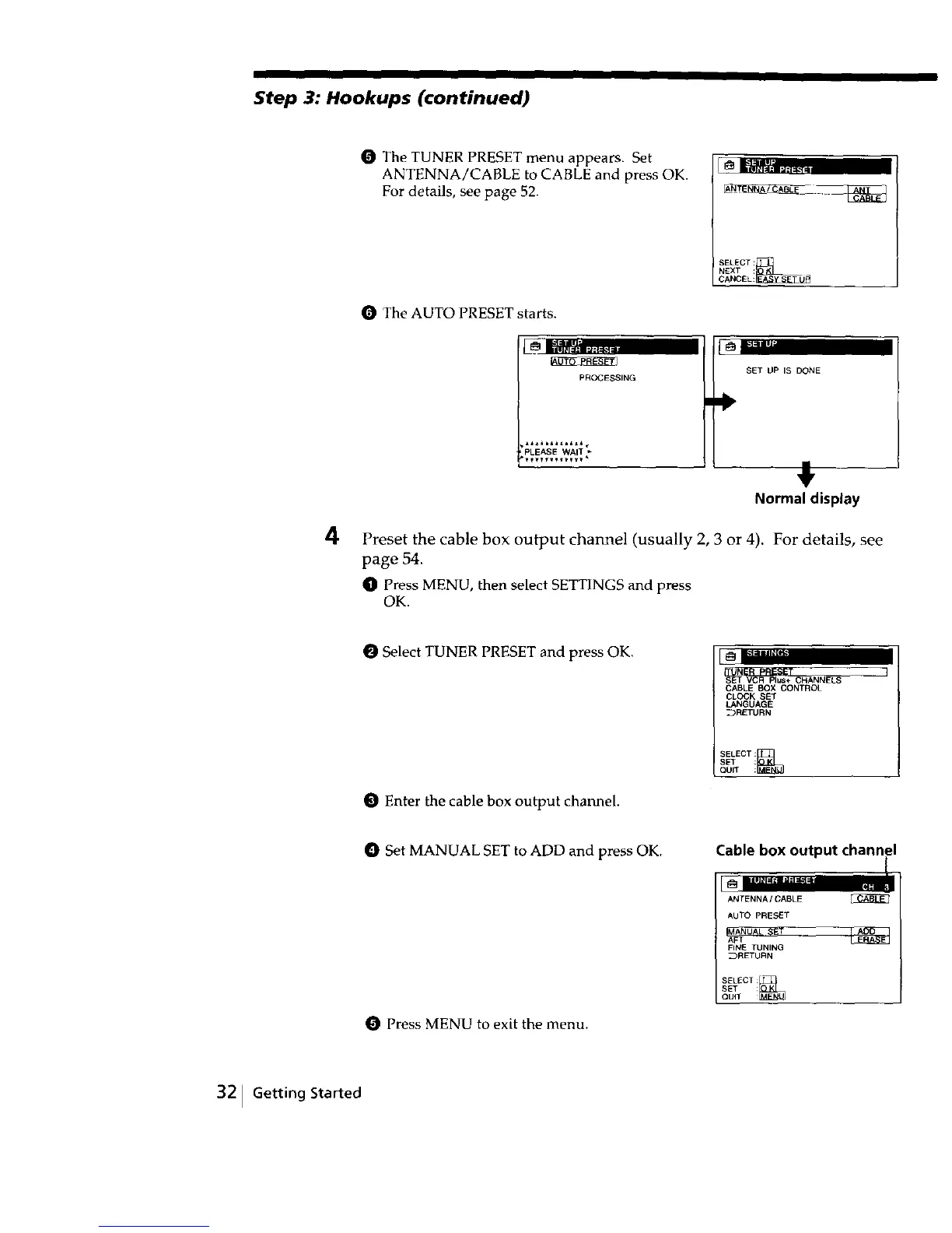 O Set MANUAL SET to ADD and press OK. Cable box output channel