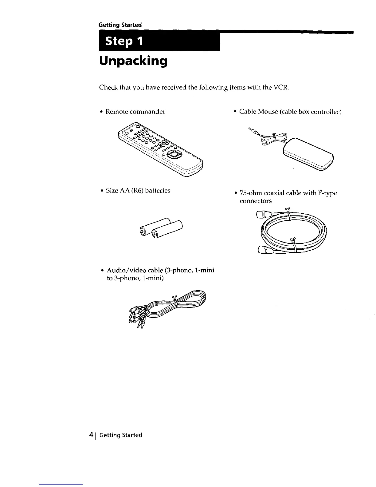 Sony SLV-792HF - Getting Started; Step 1: Unpacking