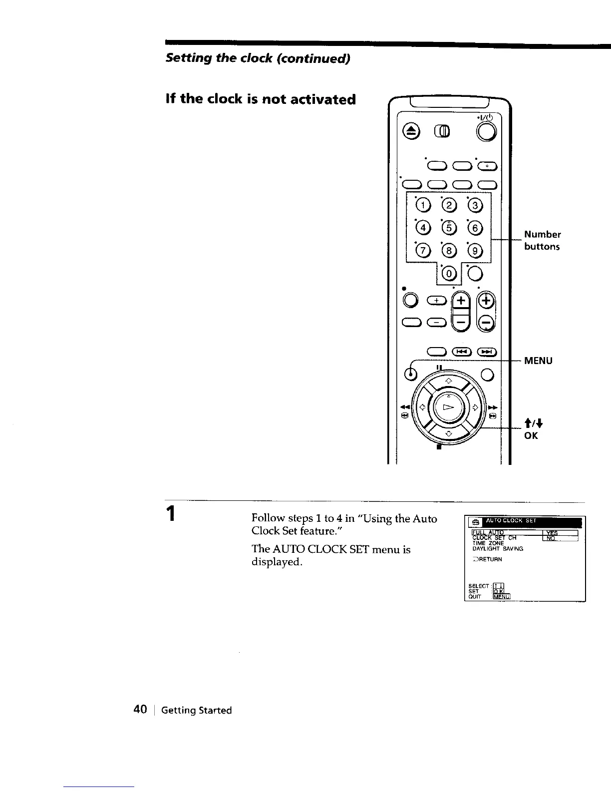 The AUTO CLOCK SET menu is