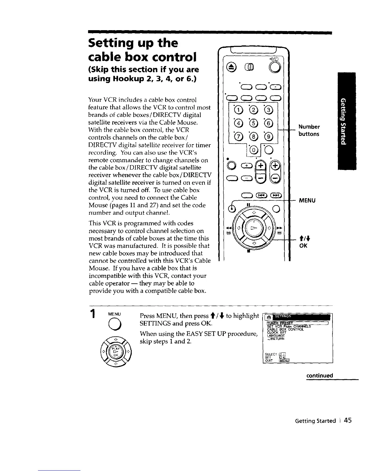 Your VCR includes a cable box control