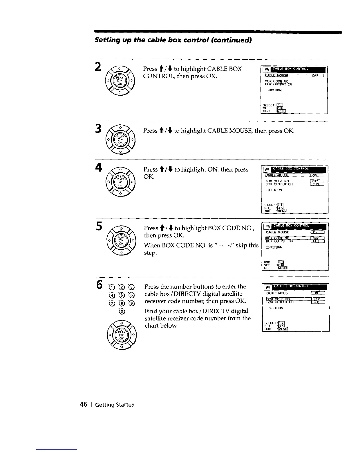 2 _ Press t1'/'_ to highlight CABLE BOX