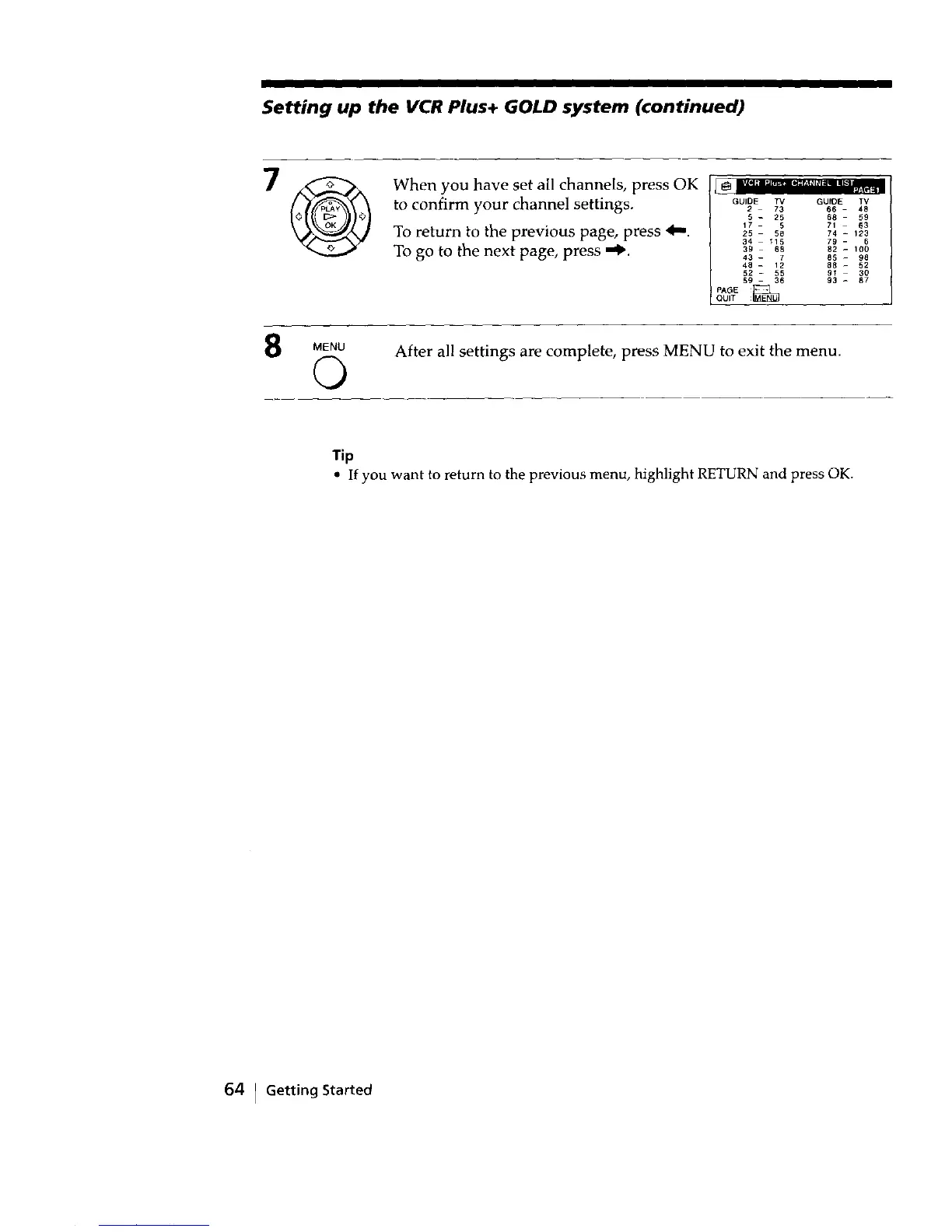 Setting up the VCR Plus+ GOLD system (continued)