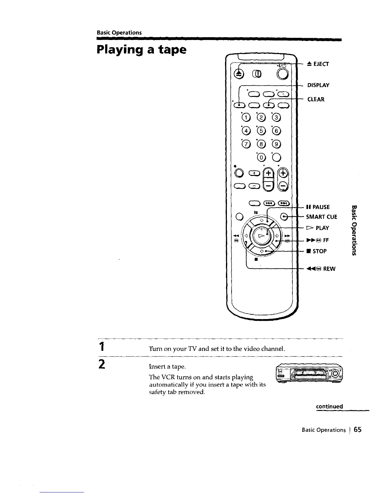 Sony SLV-792HF - Basic Operations; Playing a Tape