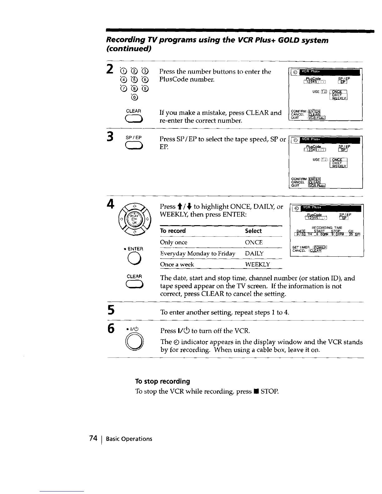 Recording TV programs using the VCR Plus+ GOLD system