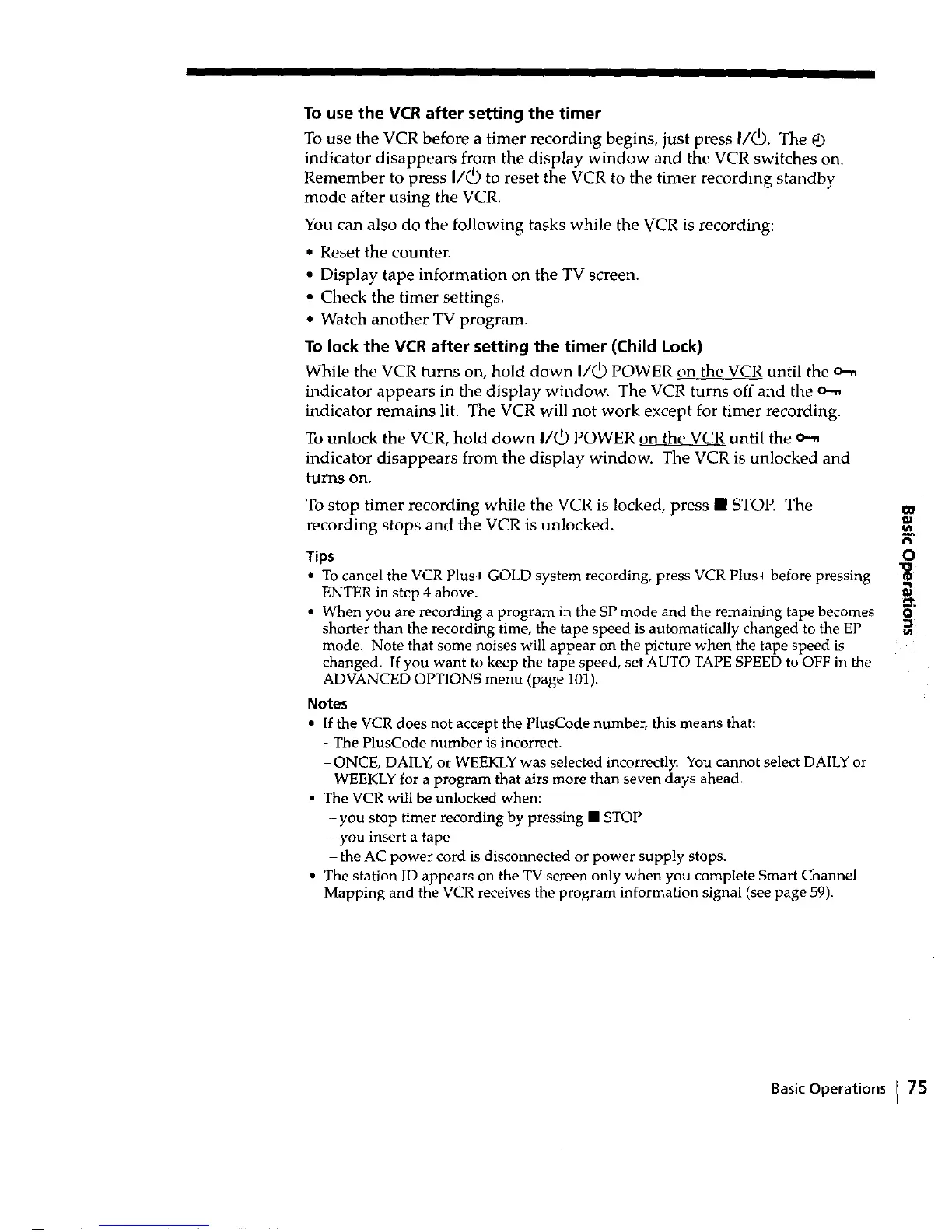 To use the VCR before a timer recording begins, just press I/_. The