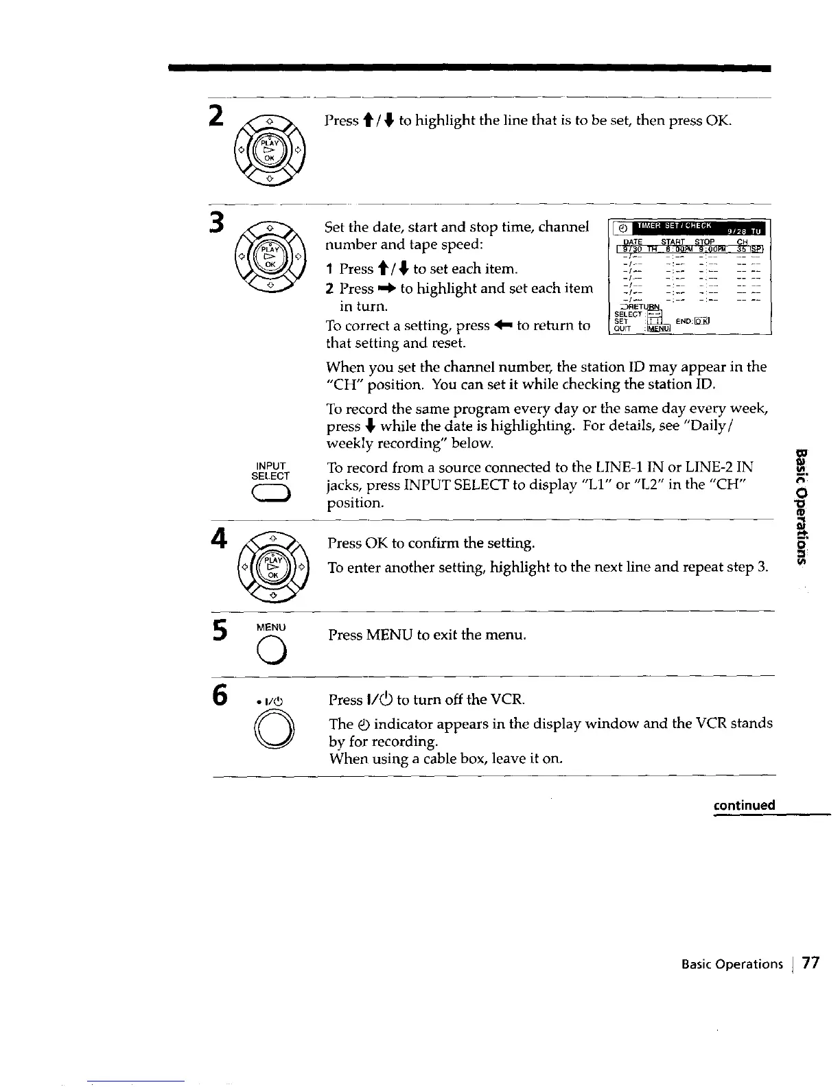_ Press t1"/_ to highlight the line that is to be set, then press OK.