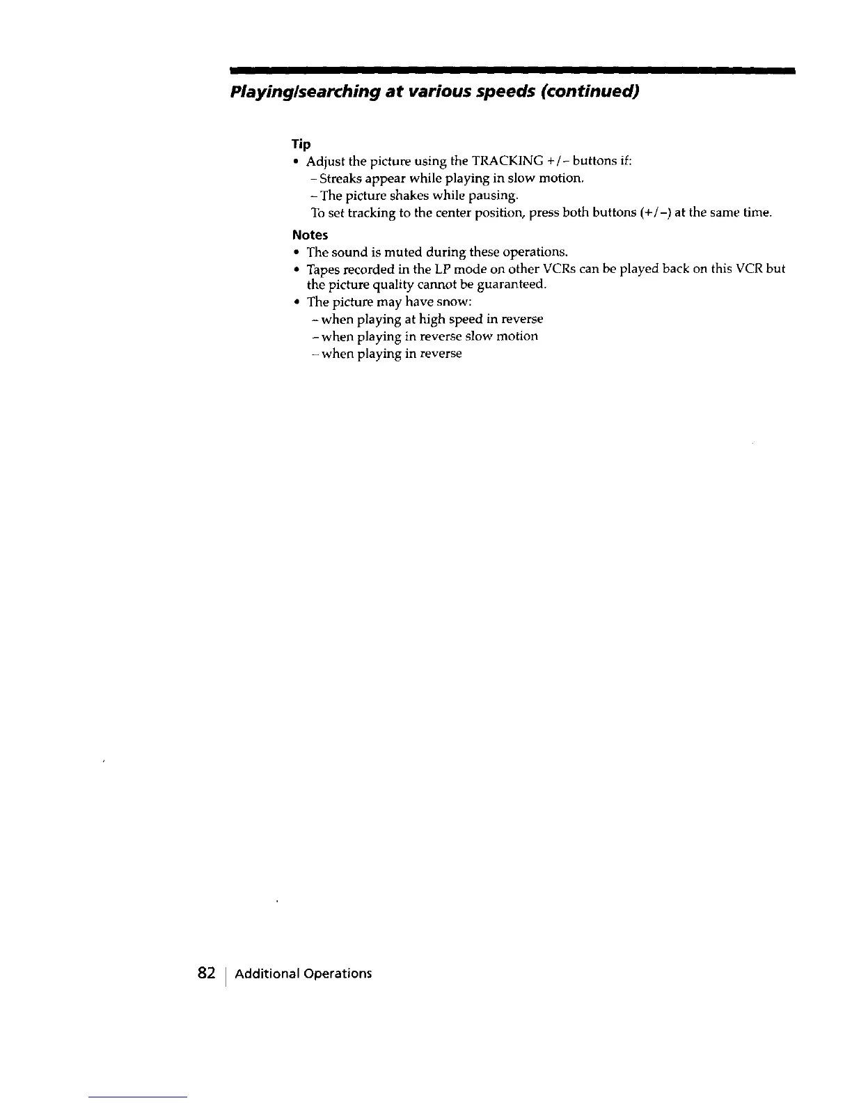 • Tapes recorded in the LP mode on other VCRs can be played back on this VCR but