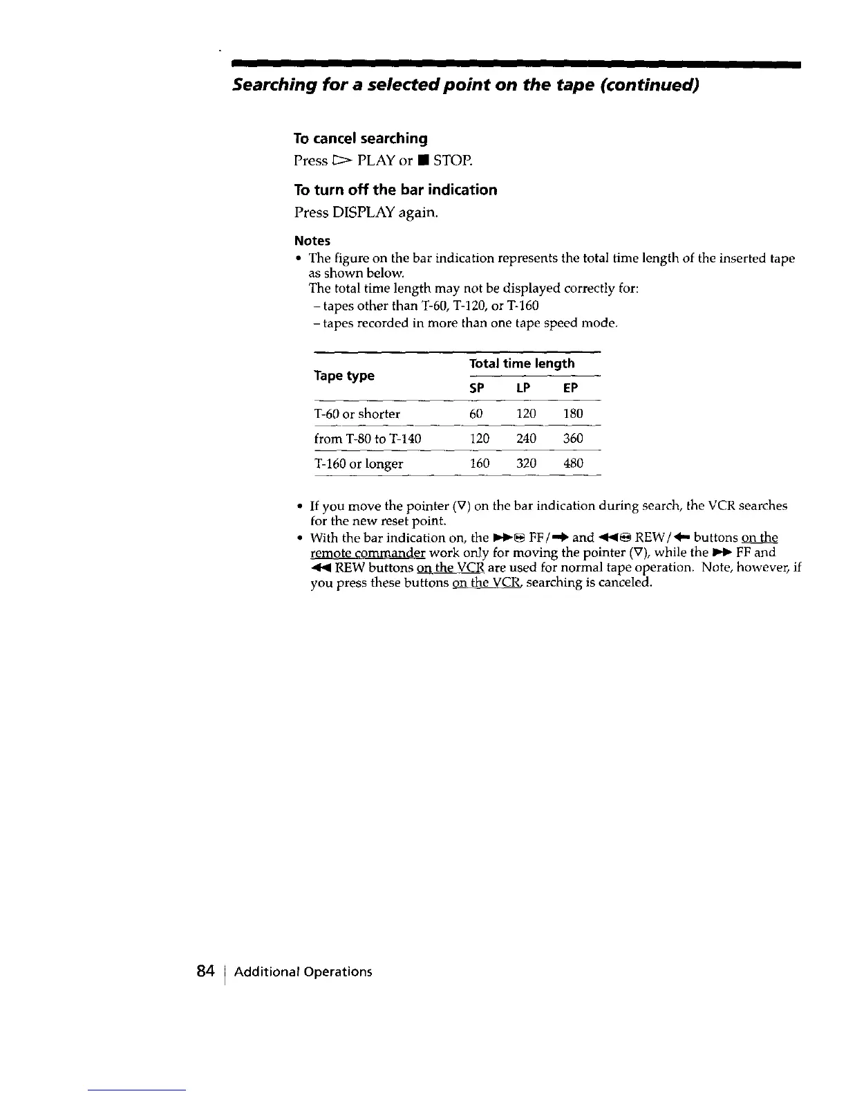 • If you move the pointer (V) on the bar indication during search, the VCR searches