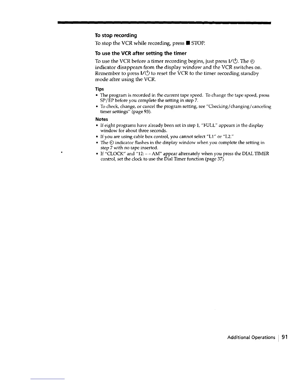 To use the VCR before a timer recording begins, just press I/_. The