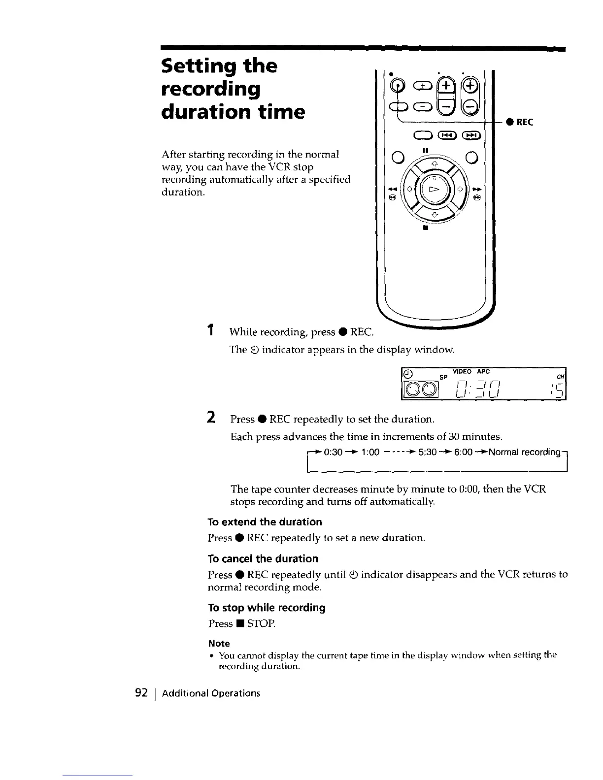 Press • REC repeatedly to set the duration.