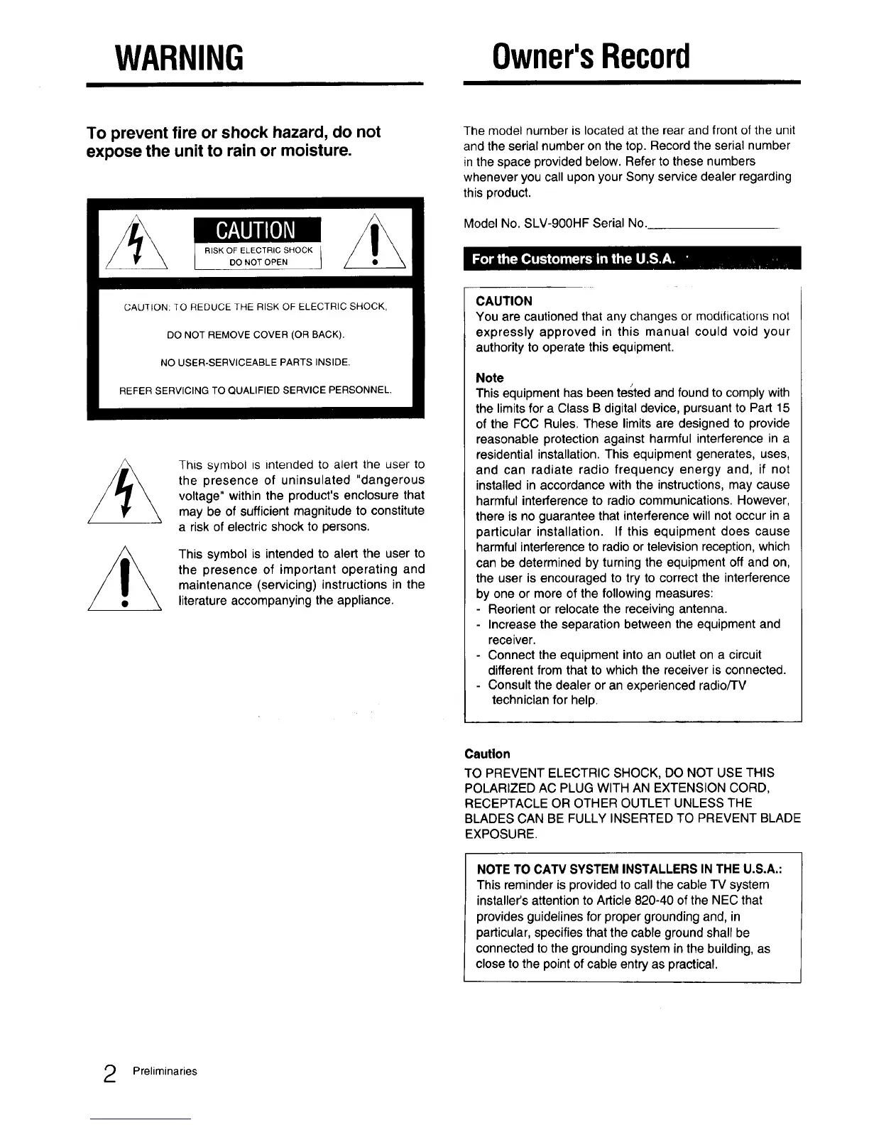 Model No. SLV-900HF Serial No.